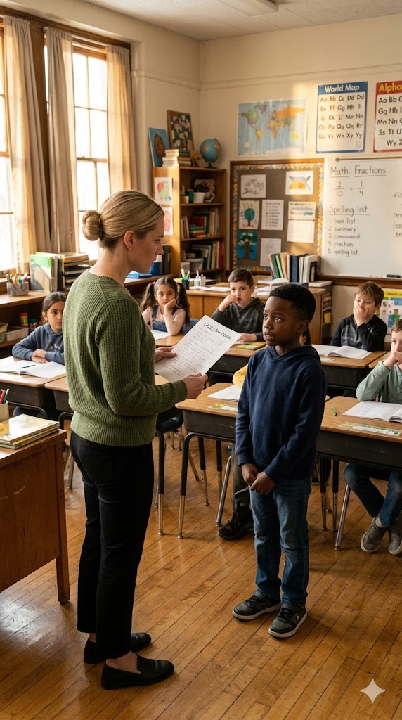 Malik didn’t respond right away. His dark eyes moved briefly around the room. Some classmates avoided looking at him. Others stared with curiosity. A few seemed entertained, sensing something unfolding.