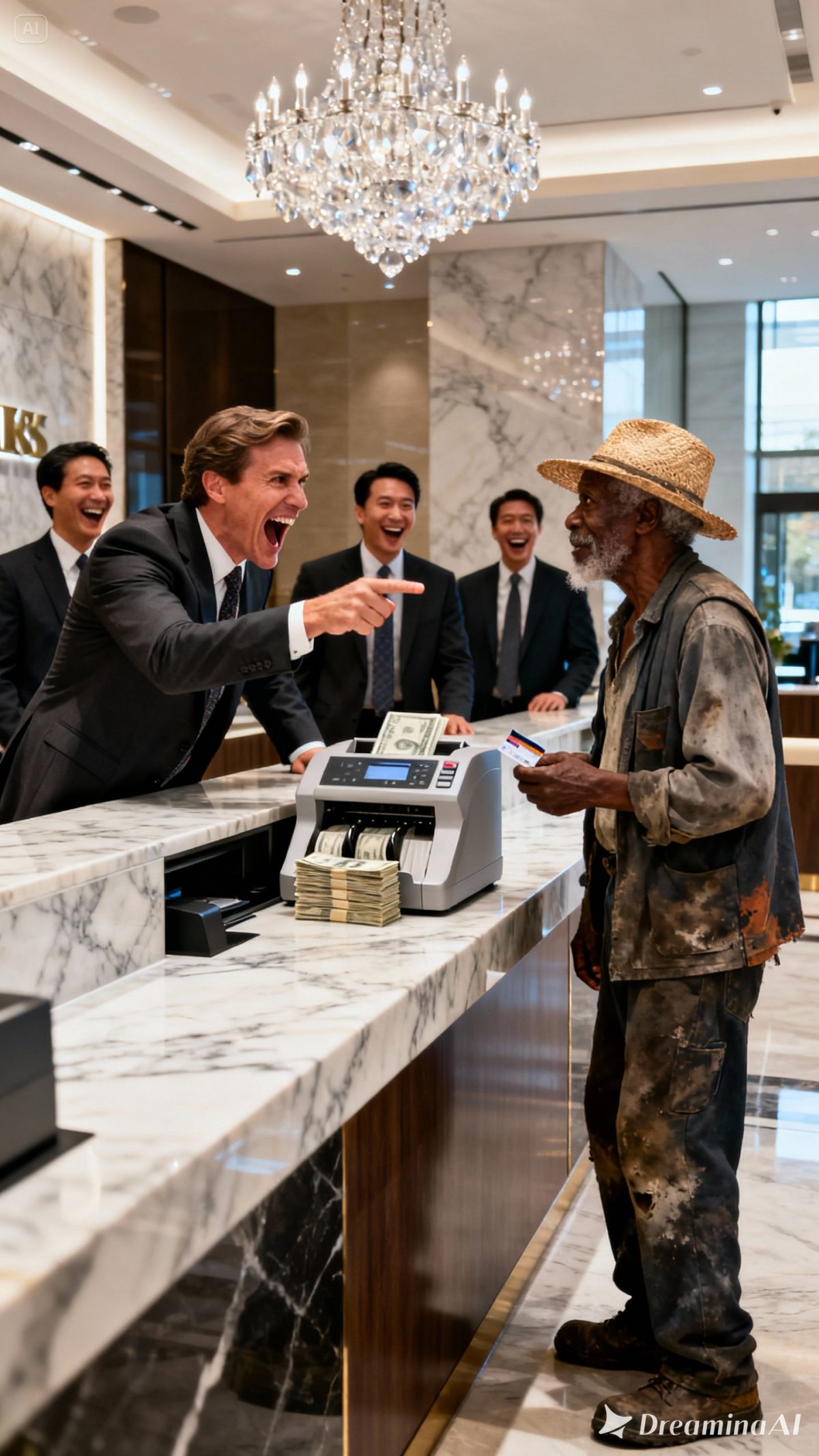 A murmur rippled through the lobby. Shock replaced ridicule. Disbelief swept the room. The elderly woman pressed a hand to her chest. Someone gasped aloud.