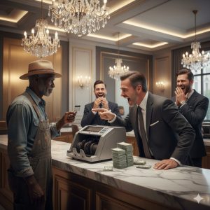 Sebastián watched the man with irritation, as if his very presence disrupted the order of the room. To him, the bank wasn’t a service—it was a stage. Customers were props. Authority was performance. Respect was something you earned by looking important.