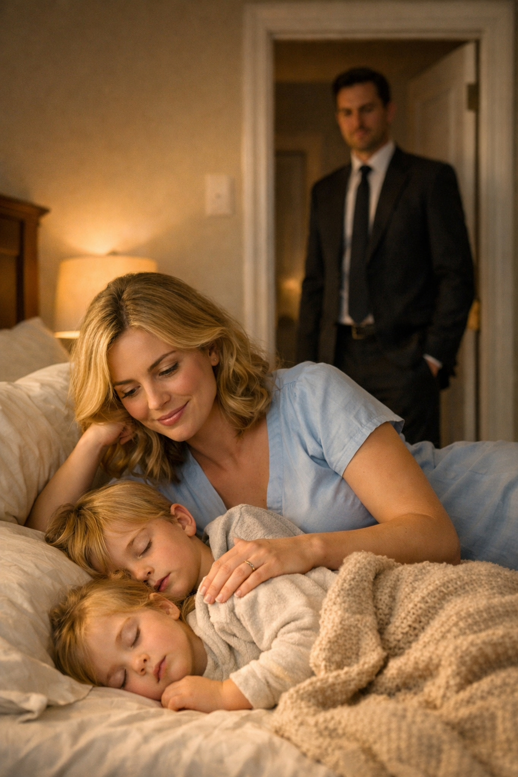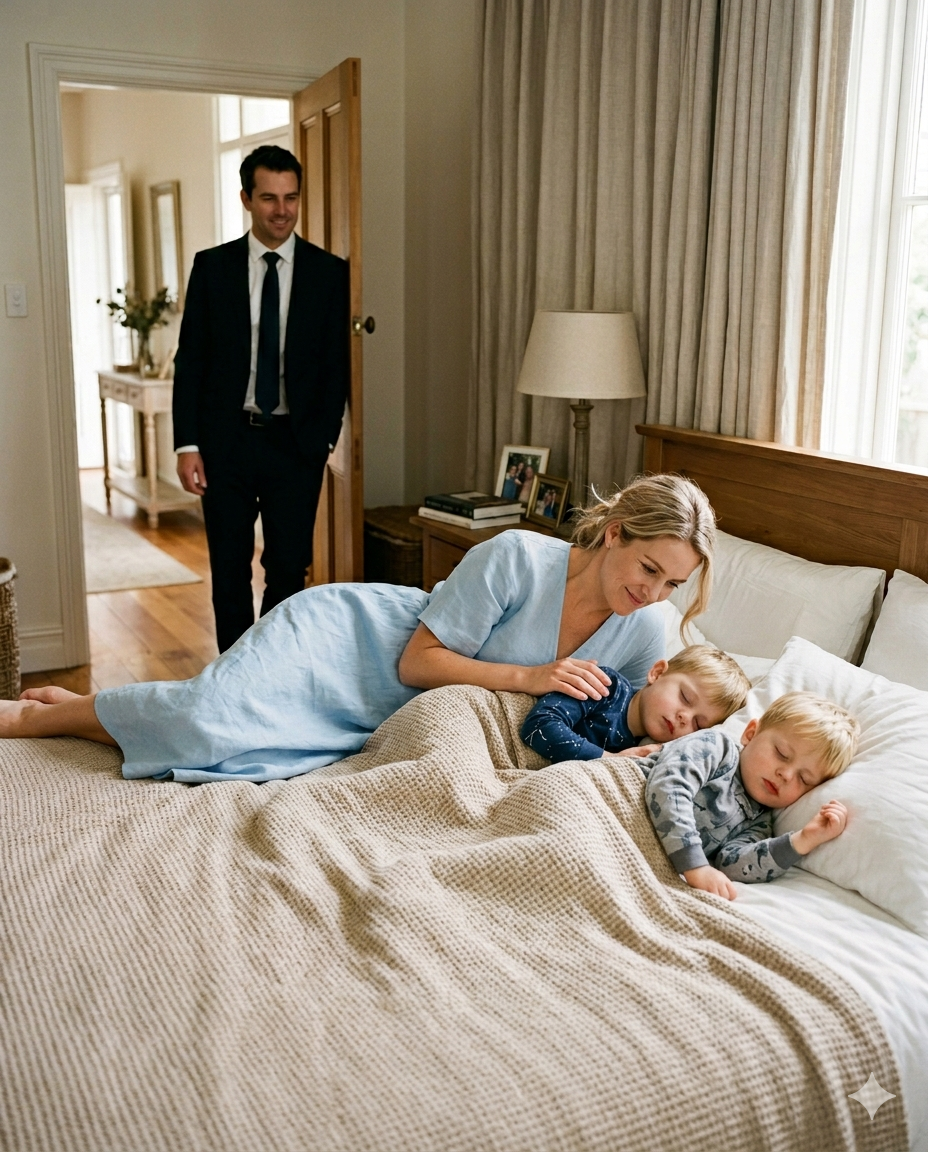 That night, like so many before, Ethan ended up on the floor beside his sons’ bed, still in his wrinkled suit, awkwardly humming lullabies as the boys cried for their mother.
