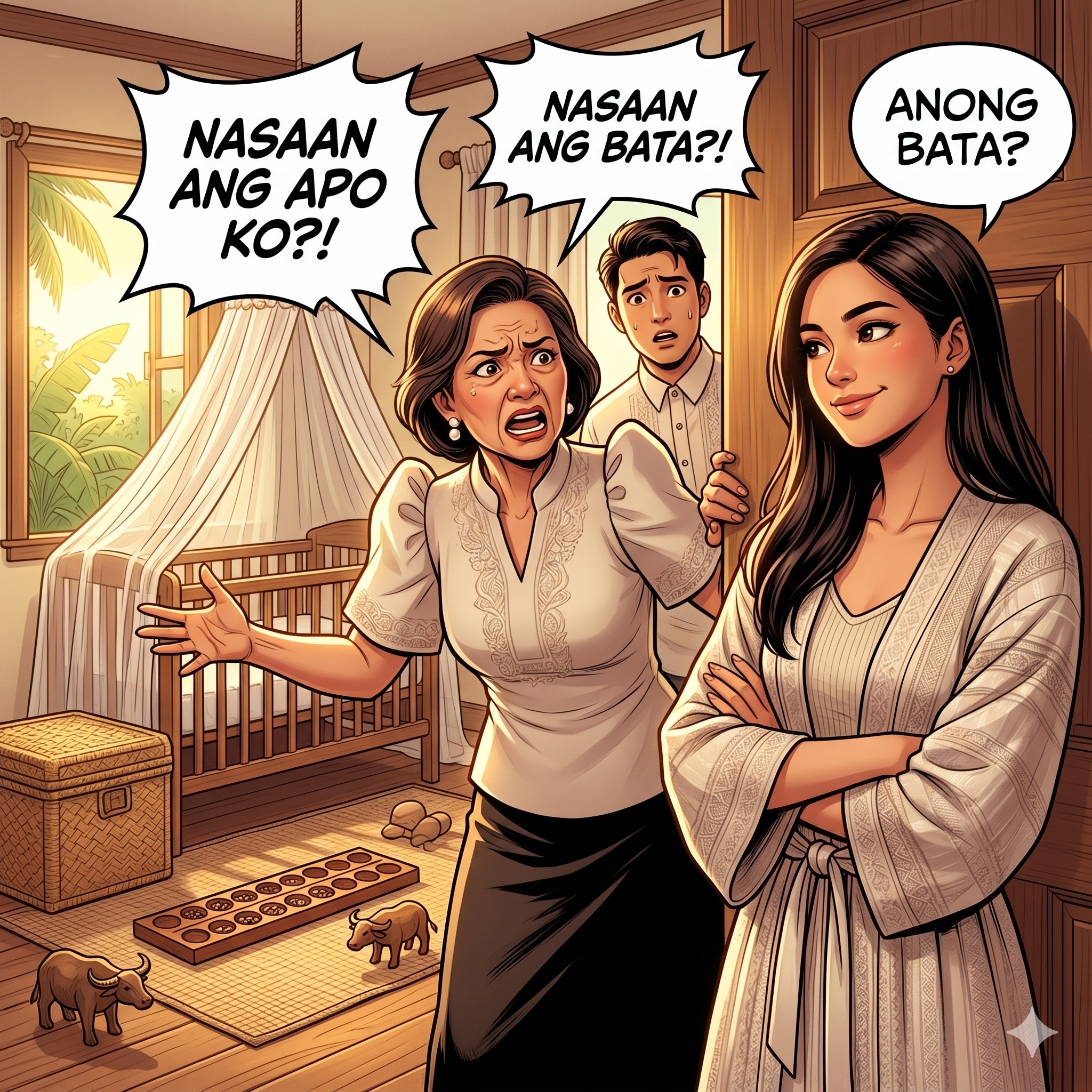 Dumeretso si Aling Mila sa nursery at hinalughog ang bawat sulok. Binuksan niya ang cabinet, hinawi ang kumot sa crib.